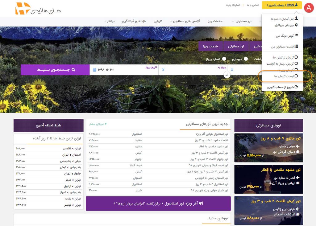 A برای آگاهی از وضعیت کنسلی خود می توانید به پروفایل خود رجوع کنید. در پروفایل شما تمامی اطلاعات کنسلی جاری و کنسلی های قبل قابل رویت است.